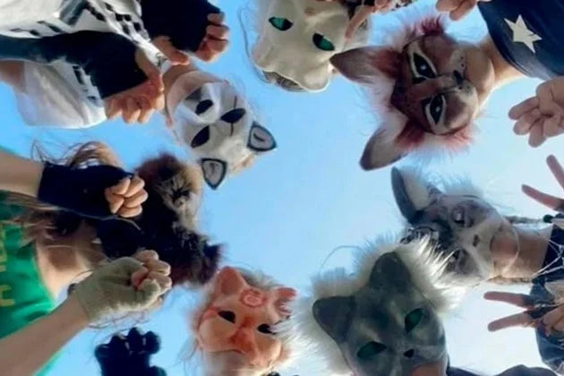 Animal gato Fursuit cabeza máscara peluda y Therian pata guantes conjunto ,Cosplay accesorios de disfraz